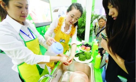 5月6日,在中國(guó)國(guó)際清潔產(chǎn)業(yè)博覽會(huì)上,工作人員演示清潔產(chǎn)品的對(duì)比實(shí)驗(yàn)。當(dāng)日,為期3天的2012中國(guó)國(guó)際清潔產(chǎn)業(yè)博覽會(huì)在北京國(guó)家會(huì)議中心開(kāi)幕。本屆博覽會(huì)的主題是“新清潔點(diǎn)亮新生活”,吸引了國(guó)內(nèi)外上百家清潔企業(yè)攜最新清潔技術(shù)和理念參加。(來(lái)源:新華網(wǎng))