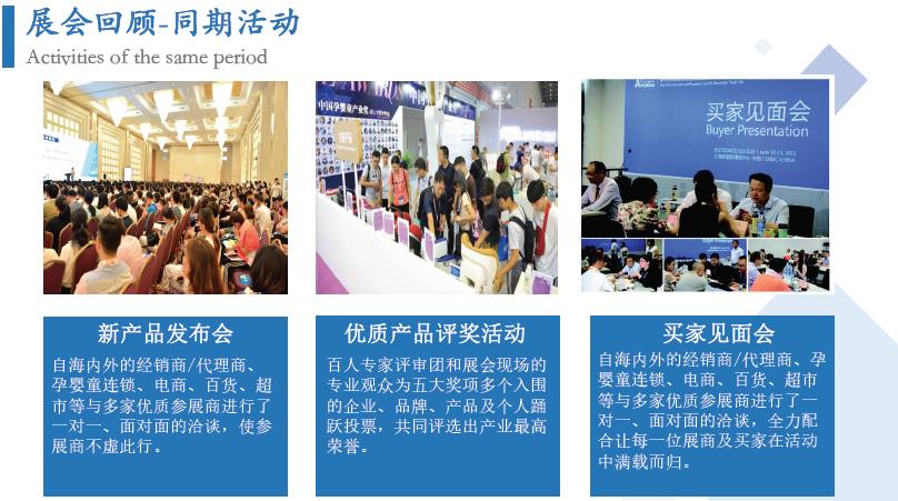 為提升企業(yè)的品牌知名度和美譽(yù)度,彰顯卓越的產(chǎn)品品質(zhì)和服務(wù),展會開展期間將舉行產(chǎn)品評獎活動,大會獎項(xiàng)設(shè)置“金獎”;“推薦新產(chǎn)品”獎;“優(yōu)質(zhì)產(chǎn)品、最佳產(chǎn)品”獎;(相關(guān)參評條件請向組委會索取)。展會期間將邀政府機(jī)構(gòu)、國家級媒體及行業(yè)媒體、業(yè)內(nèi)專家、舉辦千人大會及多場專題論壇,會議與展會相互輝映,品牌企業(yè)的必選!母嬰連鎖與電商智變專題論壇,母嬰零售門店升級發(fā)展新途徑母嬰服務(wù)品牌升級發(fā)展論壇,月子會所與產(chǎn)后修復(fù)發(fā)展論壇,嬰兒游泳與親子攝影論壇、資助貧困兒童大型義賣公益活動、公益大講堂等等。使眾多參會人員在參觀展會的同時,享受學(xué)習(xí)、交流的饕餮盛宴,得到了參展企業(yè)的一致好評。
